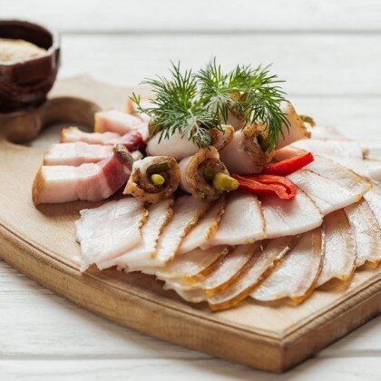 Угорь, сёмга, балык из масляной рыбы, икра, сливочное масло