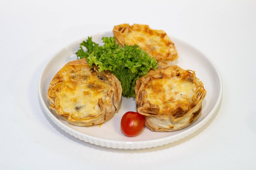куриное филе, шампиньоны, сливочный соус, сыр моцарелла, тонкий лаваш.