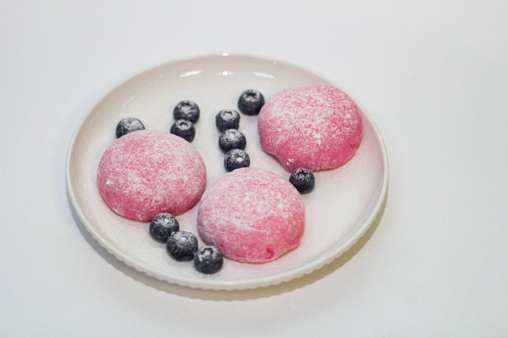 Японский десерт из рисового теста с различными ягодными начинками , в основе сырно-сливочный крем.